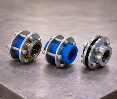 Uniões: União simples e União com Flange (Padrão ANSI).